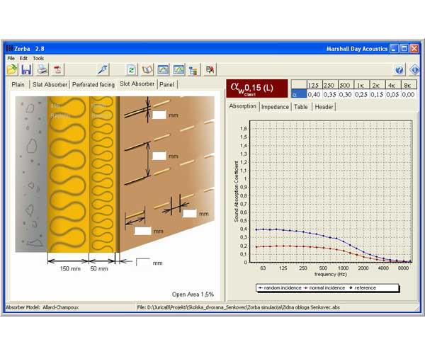 – Projektiranje materijala adekvatnih akustičkih uvjeta, za oblaganje zidnih površina školske sportske dvorane