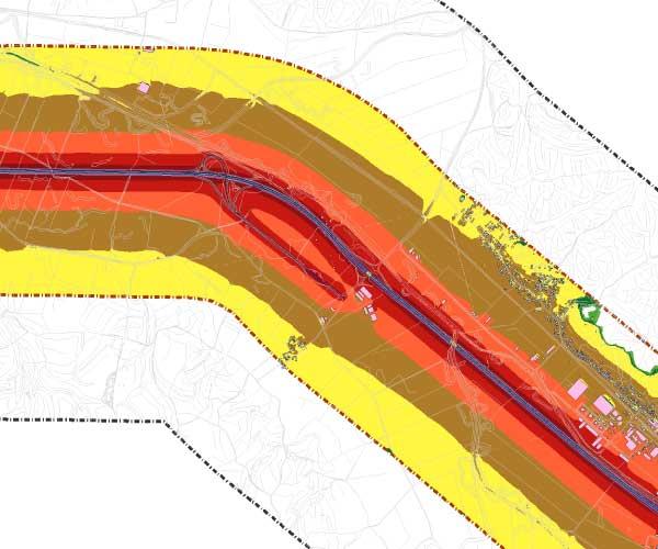 Završni elaborati sadržavaju grafičke prikaze indikatora buke, Lday, Lnight, i Lden , kao i potpunu analizu izloženosti stanovništva (korištena je tzv. LKZ metoda proširena s njemačkim nacionalnim standardom VBEB) u skladu s odredbama Smjernice 2002/49, koja uzima u obzir:
