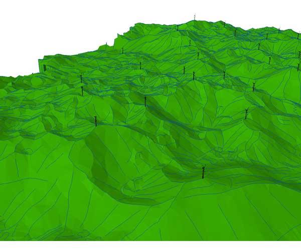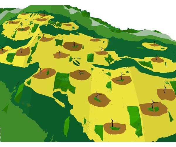 Cilj studije je bio ocijeniti utjecaj razina buke uzrokovane radom vjetroelektrana na najbliže stambene prostore u okolini predmetnog područja. Izrađen je 3D akustički model proširenog područja Vjetroparka “Mravinjac“, uključujući okolna naselja. Na predmetnoj lokaciji modelirano je postavljanje 29 vjetroagregata ukupne maksimalne snage do 90 MW. Cijelo područje akustičkog modela obuhvaća ugroženo područje površinom ≈ 22,3 km2 i ukupnim opsegom ≈ 19,2 km.