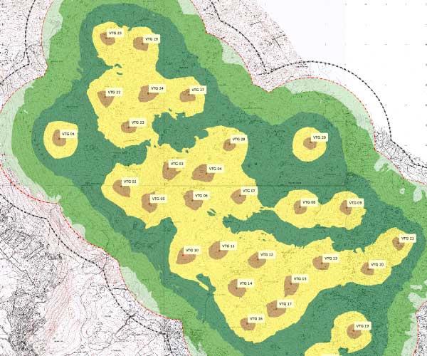 Završni elaborat sadržava grafičke prikaze indikatora buke Lday i Lnight za buduće stanje u okolini planiranog Vjetroparka „Mravinjac“.