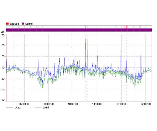 Postupak mjerenja razina buke je prilagođen posebnosti mjerenja buke uzrokovane vjetroelektranama uključujući neprekidno snimanje zvuka na svim mjernim mjestima te praćenjem nužnih meteoroloških parametara.