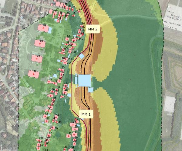 Rezultati mjerenja buke su potvrđeni izradom akustičkog modela kako bi se računalnim proračunom odredile razine buke tijekom svih ocjenskih razdoblja ispred pročelja svih stambenih objekata unutar područja zahvata.