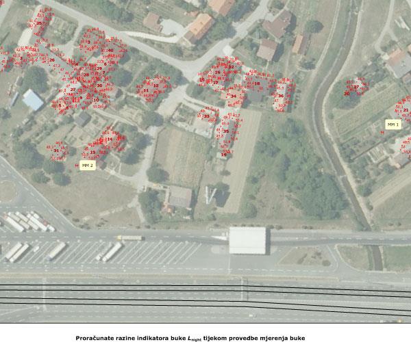 Rezultati mjerenja buke su potvrđeni izradom akustičkog modela kako bi se računalnim proračunom odredile razine buke tijekom svih ocjenskih razdoblja ispred pročelja svih stambenih objekata unutar područja zahvata.