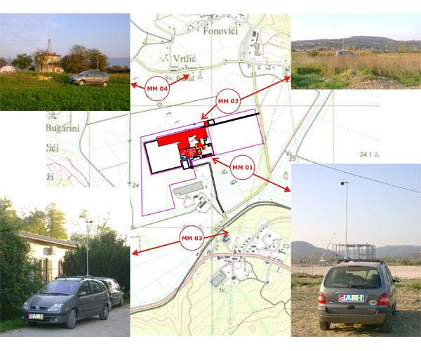 Na temelju zahtjeva studije o utjecaju na okoliš mjerna mjesta su odabrana na samoj granici građevinske parcele u smjeru najbližih boravišnih prostora (dva mjerna mjesta),u središtu naselja Potpićan (Rudarska ulica 6), odnosno na vanjskoj granici parcele u naselju Vrtlići.