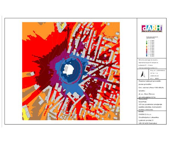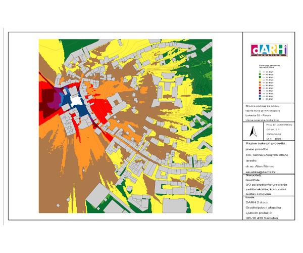 Za Grad Pulu izrađena je stručna podloga za određivanje dopuštenih razina buke prilikom održavanja javnih skupova, razonode, zabavnih i drugih aktivnosti na području Grada Pule. Grad Pula je odredio 5 lokacija na kojima se najčešće organiziraju javni skupovi za koje su akustičkim metodama prognoziranja razina buke određena područja prema zahtjevima Čl. 16, Zakona o zaštiti od buke (NN 20/03). Navedene lokacije uključene u stručnu podlogu su:
