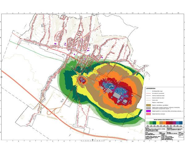 Završni elaborati sadržavaju grafičke prikaze indikatora buke, Lday, Levening, Lnight, i Lden , kao i potpunu analizu izloženosti stanovništva (korištena je tzv. LKZ metoda) koja u skladu s odredbama Smjernice 2002/49, uzima u obzir: - Razine buke proračunate postupkom izrade karte buke industrijskih pogona. - Vrijeme izloženosti buci (dan/večer/noć odnosno 24 h). - Namjena prostora iz prostorno planske dokumentacije. - Zakonski dopuštene razine buke na vanjskom prostoru. - Ukupan broj stanovnika.